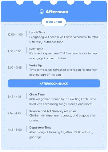 A well-designed weekly curriculum plan for toddlers with a range of recreational activities holds significant importance in their development. Our weekly schedule includes structured learning activities designed to introduce early concepts playfully. Through age-appropriate educational games, toddlers engage in cognitive development while having fun.